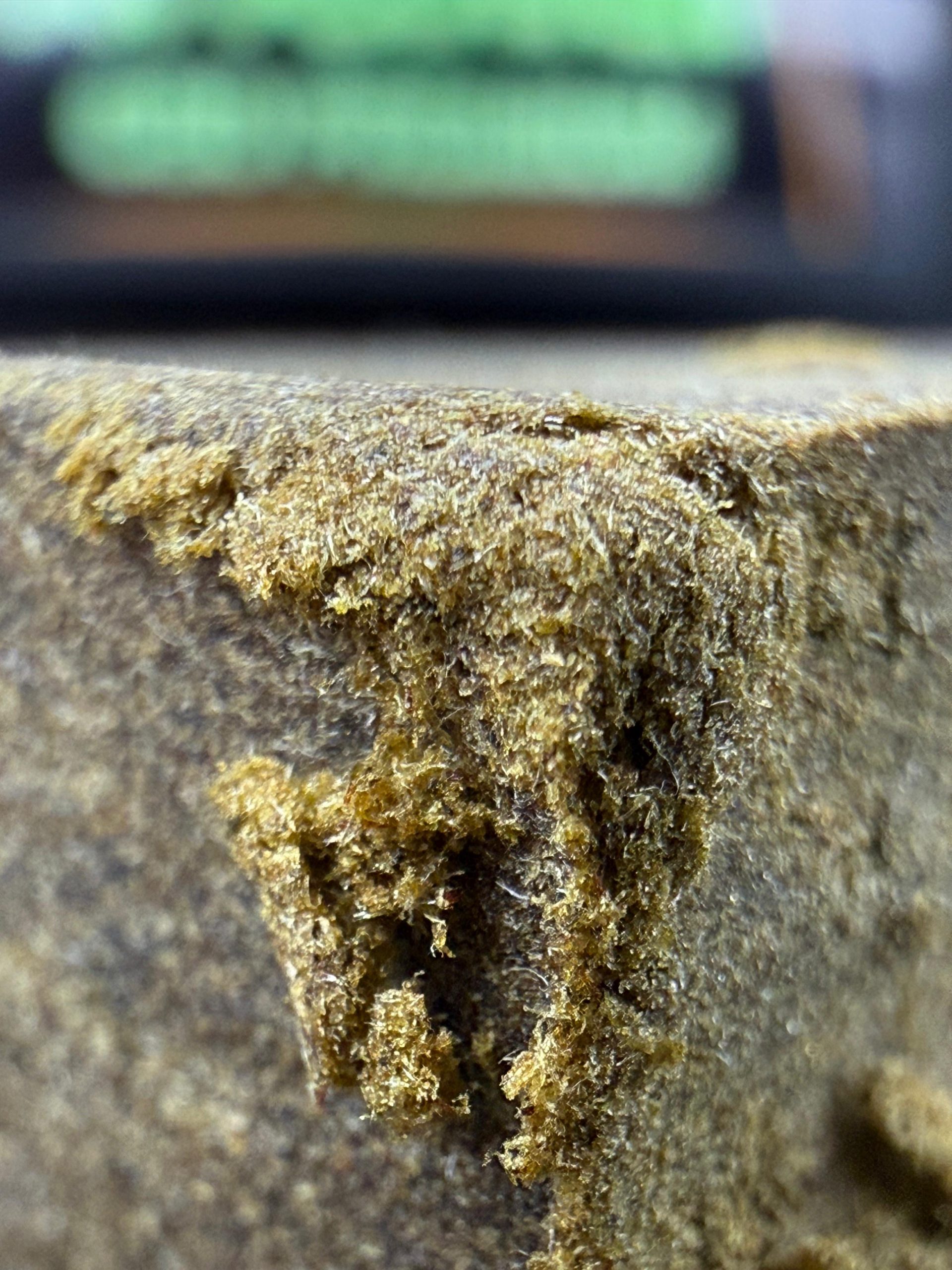 Résine compacte et homogène, teintes brun clair à ambré, facile à manipuler, bien affinée.